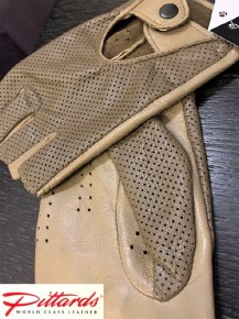 Walnut Classic Driving Finger-less Leather Gloves, stylish and solid, made of perforated and breathable soft lamb kid skin leather. Feels like a second skin and let you drive with a style! Unique because at the same time protects your hands from being cold when driving at cold weather and keep your hands from sweating while drive at hot summer time.